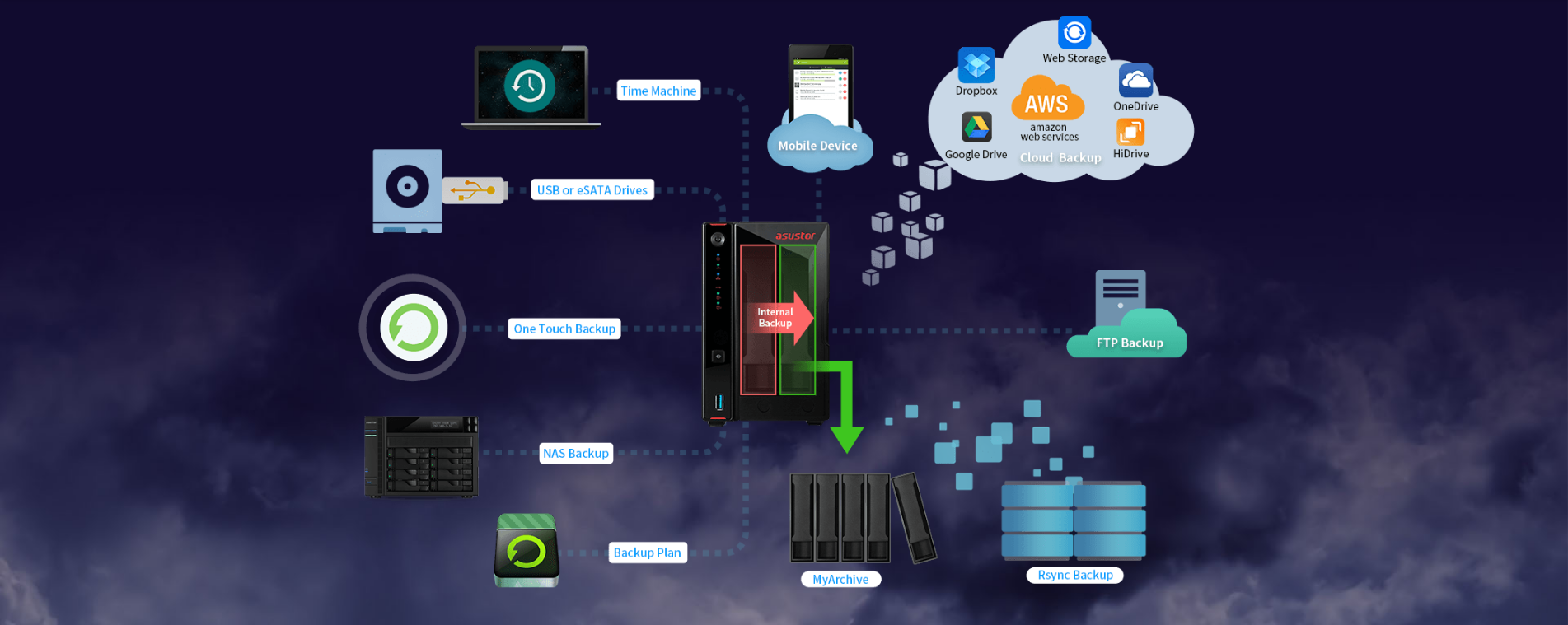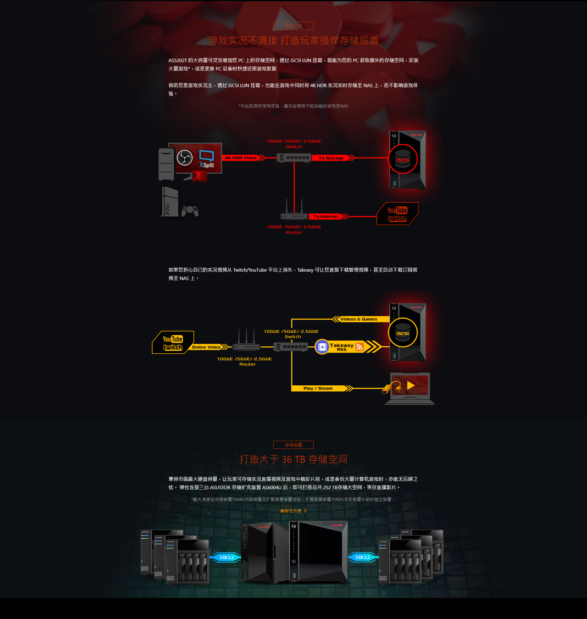 輕鬆打造 32TB 儲存空間,彈性擴充三臺 AS6004U後可達 288TB,爽存直播影片